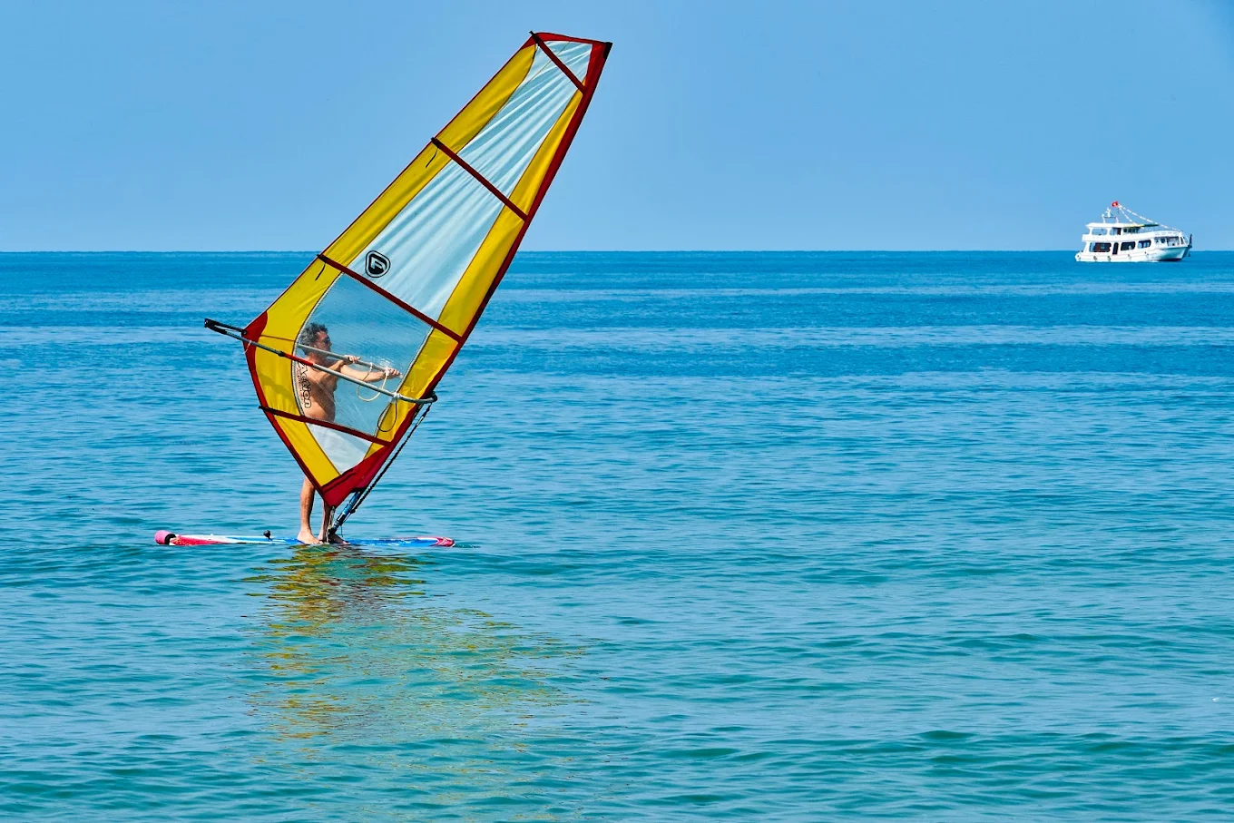 Guests can unwind at the spa, where traditional and modern treatments restore balance and vitality, or enjoy a range of water sports such as kayaking, windsurfing, and sailing.