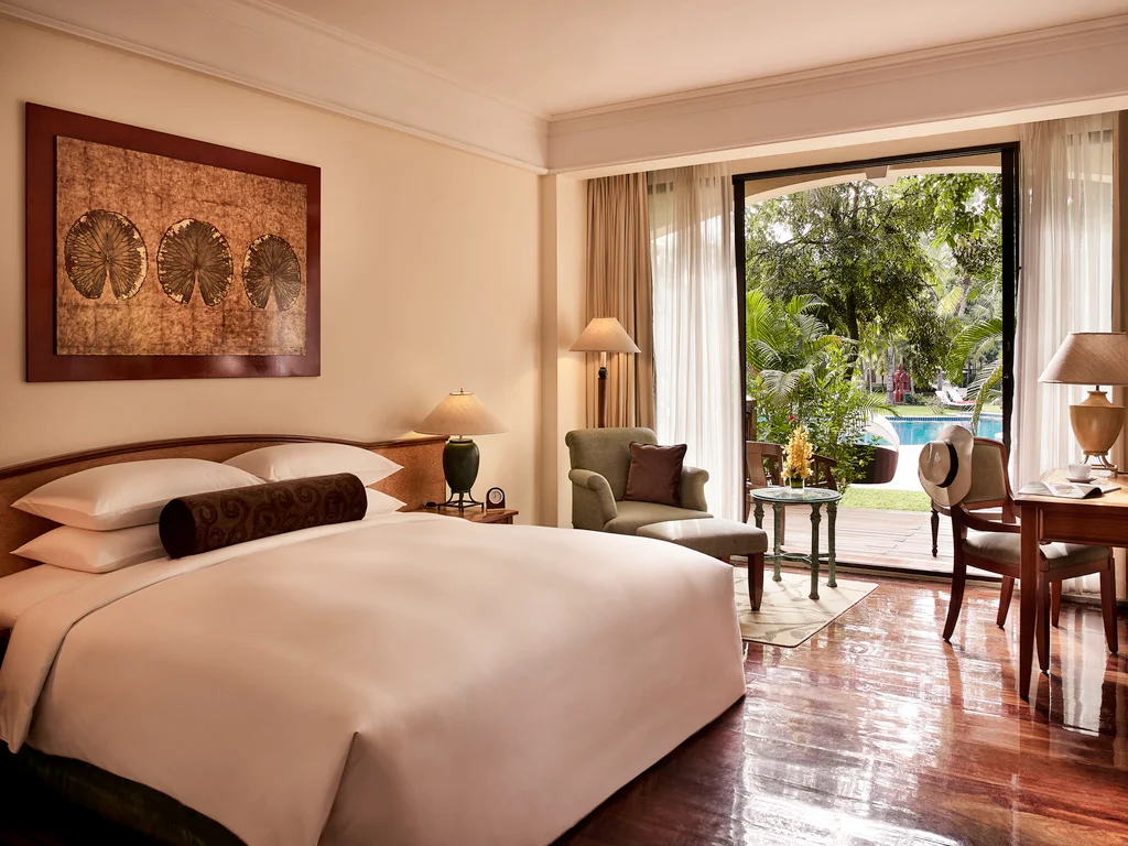 Blending French colonial charm with Khmer-inspired elegance, each room features classic furnishings, satellite TV, air conditioning, tea and coffee facilities, and marble bathrooms with bathtubs, bathrobes, and premium amenities. 24-hour room service ensures the utmost comfort and convenience.