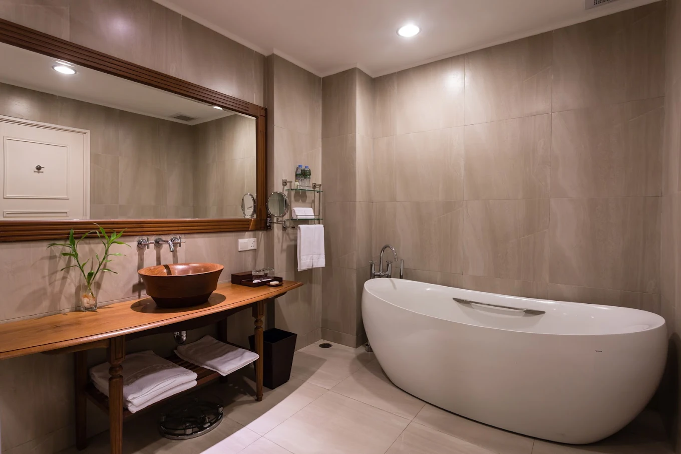 Each soundproofed, air-conditioned room and suite features a comfortable seating area, a minibar, an electric kettle, tea/coffee maker, a flat-screen cable TV, and an in-room safe. The private bathrooms come with a bathtub, hairdryer, free toiletries, bathrobes, and slippers, ensuring a relaxing stay. Ironing facilities are also provided.