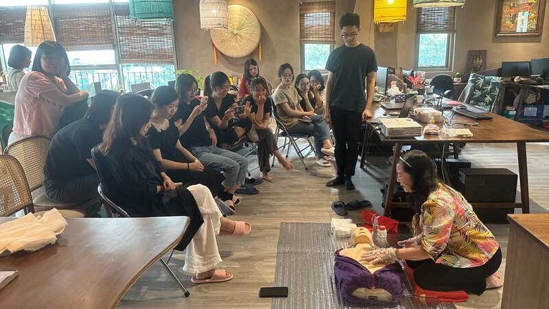 We took part in a practical session focusing on emergency first aid, covering situations such as drowning, electric shocks, stroke, fractures, and more.