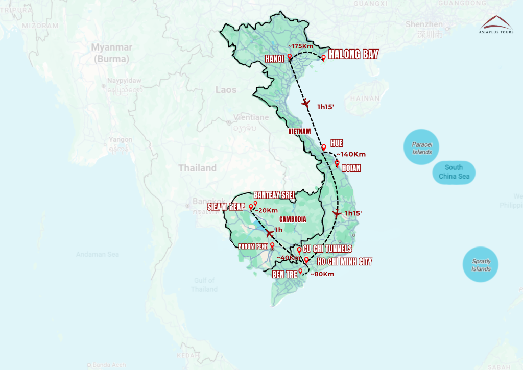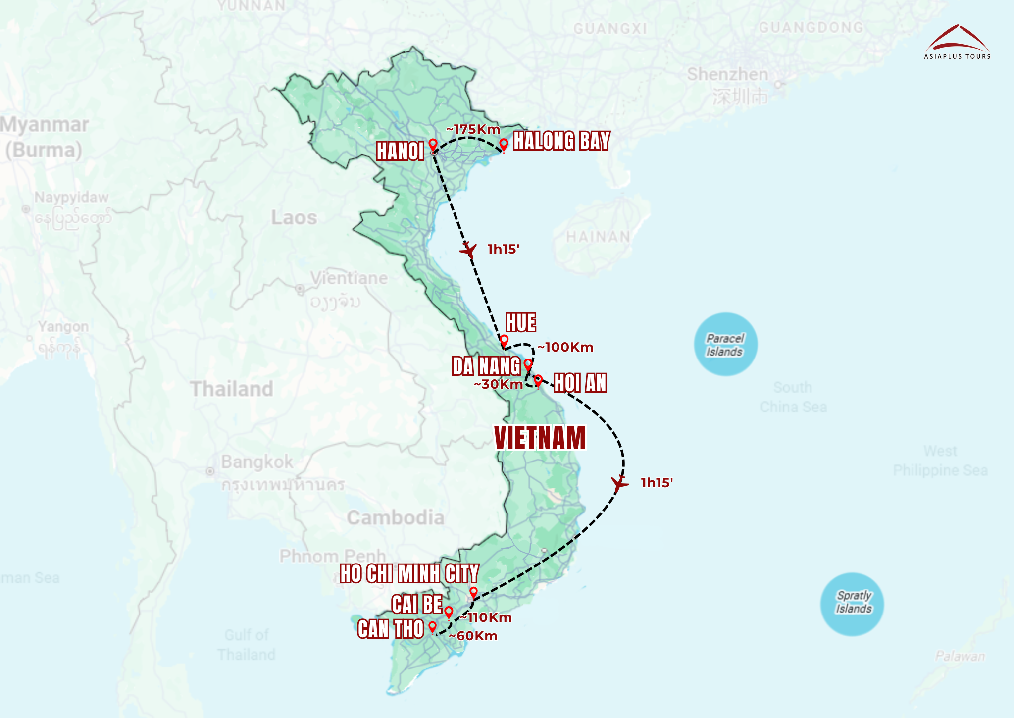 This easily-paced tour is suitable for first time travelers to Vietnam by including major actractions, from the hustle and charming capital city Hanoi to magnifient Halong Bay, then southward to pretty Hue, quaint Hoi an, cosmopolitan Ho Chi Minh city, fascinating floating market in Mekong delta…..It is also well balanced of natural beauty vs cultural and historical sites, popular places versus less visited areas. This tour can also be used as a base trip with extension to northwest of Vietnam to see the koleidescope of hill tribes living in the spectacular mountainous region or to the world wonder Angkor Wat, Cambodia.